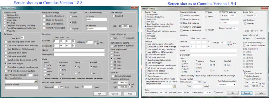 Revision as of 00:57, 30 August 2009 by Shamrockspider (talk | contribs) (Screen dump of Cumulus Calibration>Station screen (V1.8.8 build 845))